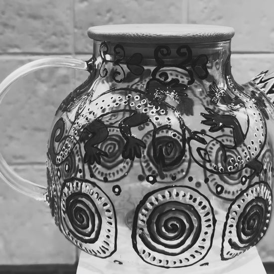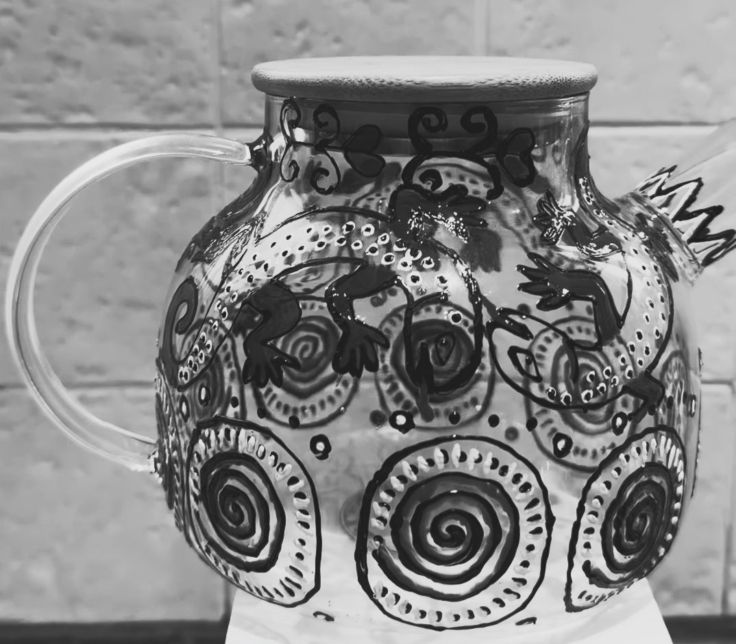 This particular teapot is a symbolic piece. The swirling circles around its base represent the turbulence of life—the storms, cycles, and emotional spirals we all move through. Layered over these spirals is a soft white detailing, symbolising rebirth, renewal, and emerging clarity after chaos.
