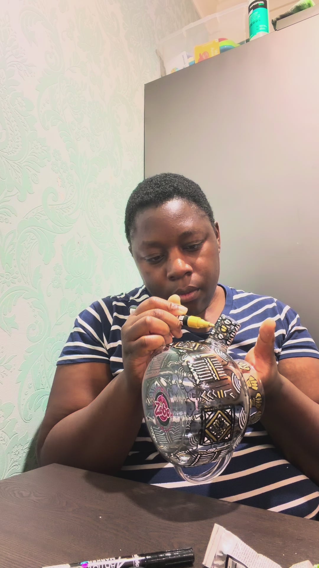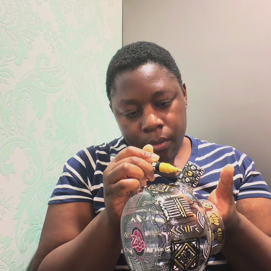 Woven into the design are cowrie-inspired patterns, drawn with intention. Cowries once travelled through history as currency, adornment, and coded communication among women during the transatlantic slave trade. Braided into hair, they carried hidden messages, identity, and resistance. The cowrie symbols on this teapot honour that legacy—reminding us that women have always found ways to speak, survive, lead, and protect one another even when their voices were restricted.