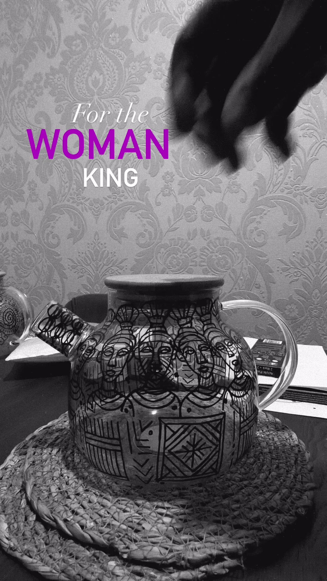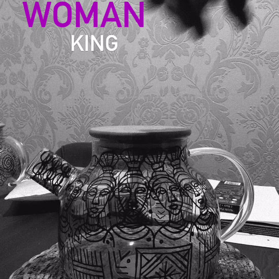 This hand-painted borosilicate teapot is a tribute to the strength, resilience, and wisdom of women. Its bold black line illustrations depict a community of women standing together—each face uniquely detailed, yet united through shared expression and purpose. The repeated motifs echo the struggles, victories, and unspoken bonds that tie women across generations.